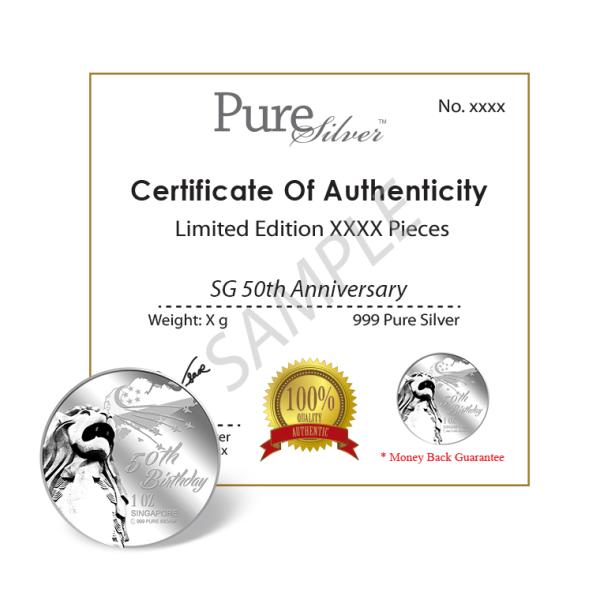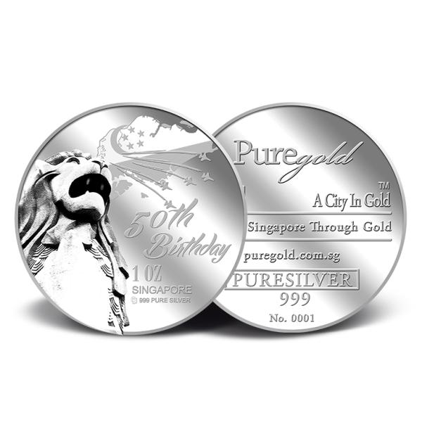 PureGold.sg will release not more than 2000 pieces of the Singapore's 50th Birthday 1Oz 999 silver medallion.