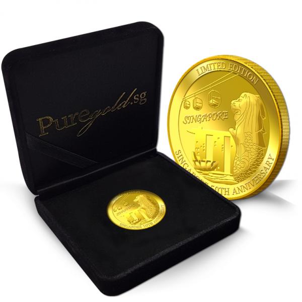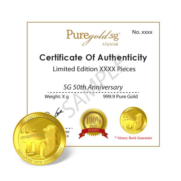 PureGold.sg will release not more than 2000 pieces of the Limited Edition Singapore's 50th Anniversary 5g 999.9 fine gold Medallion.