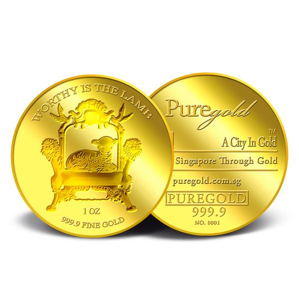 The images of "Worthy is the Lamb" are embossed on a 1oz 999.9 fine gold Medallion.