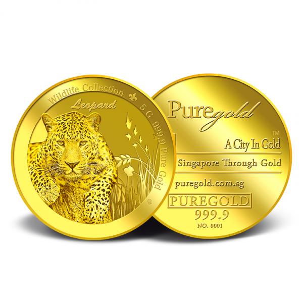 The image of the leopard is embossed on a 5G 999.9 fine gold.