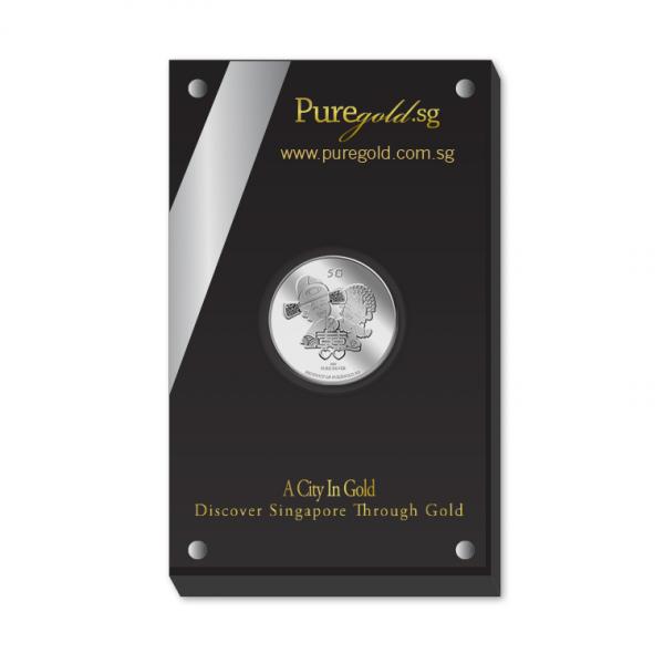 The Double Happiness gold medallion design portrays a beautiful image a groom and a bride in traditional Chinese wedding costumes, behind the Chinese ligature of “Double Happiness”. The design also includes the inscription PRODUCT OF PUREGOLD.SG, as well as the medallion’s weight and fineness.