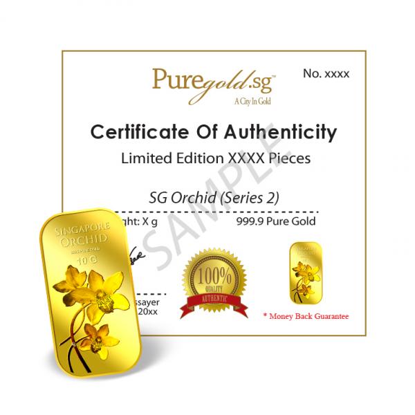The image of Singapore orchid is embossed on a 10g 999.9 fine gold.