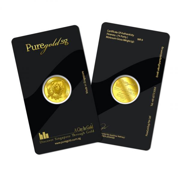 The image of an emerging black bear is embossed on a 5g 999.9 fine gold.