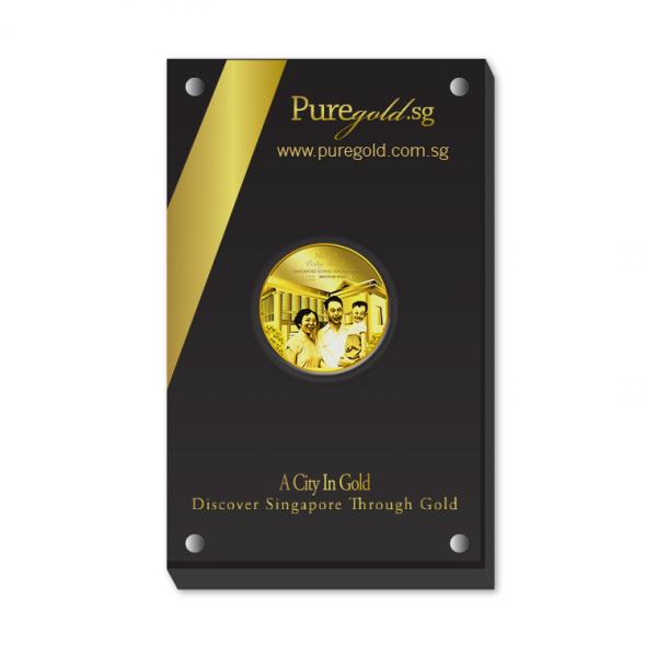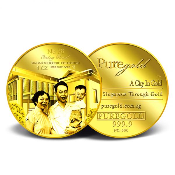 The image of Founding Father with his wife and son, and their house at 38 Oxley Road is embossed on a 1oz 999.9 fine gold Medallion.