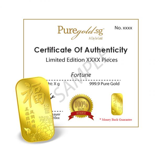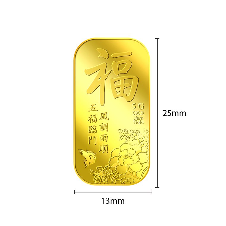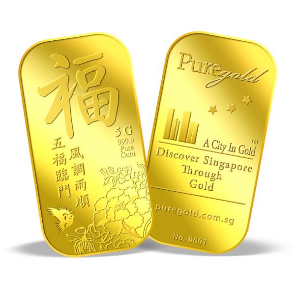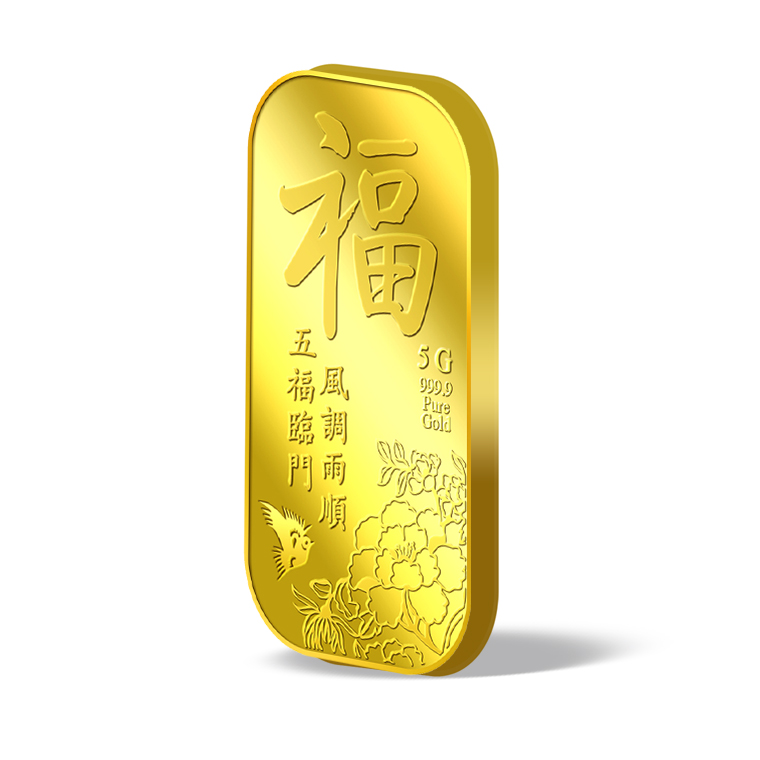 The image is embossed on a 5g 999.9 fine gold bar.