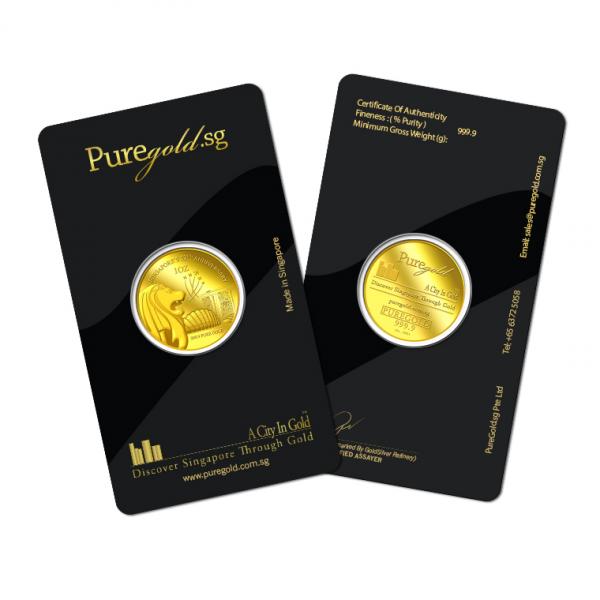 The image of the Merlion, The Garden by The Bay and The MBS is embossed on a 5g 999.9 fine gold Medallion.