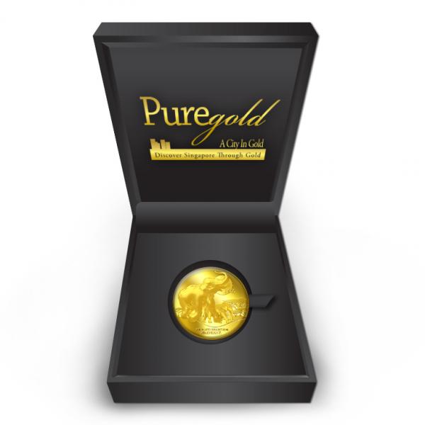 The image of an Elephant is embossed on a 1oz 999.9 fine gold.