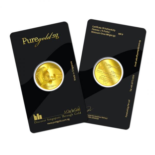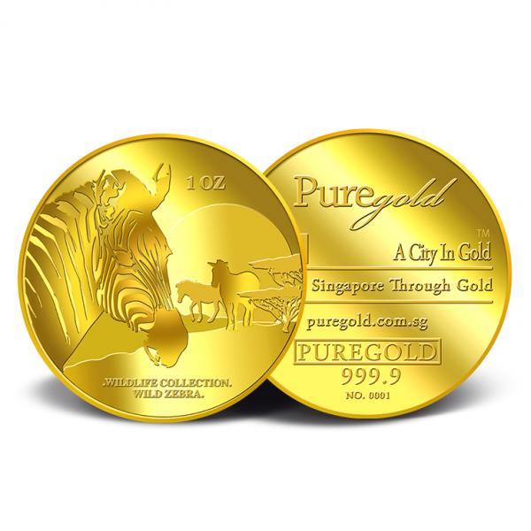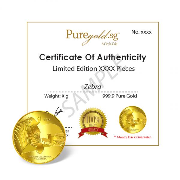 The image of a zebra is embossed on a 1oz 999.9 fine gold.