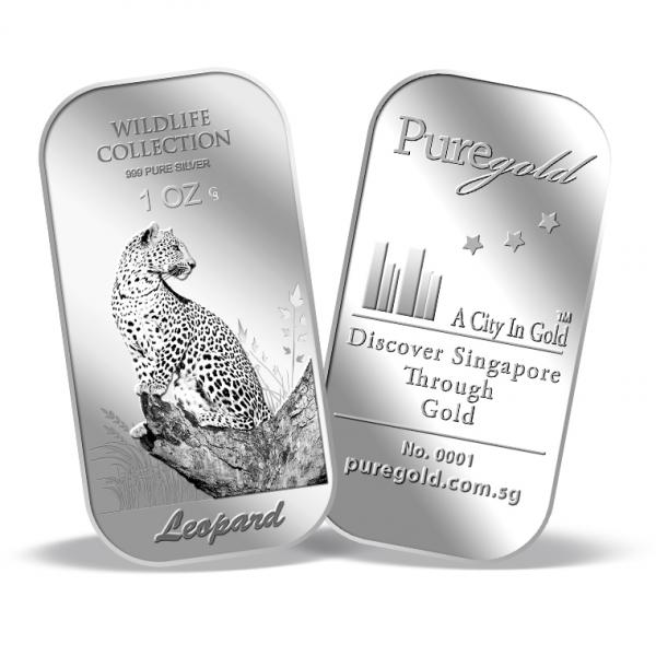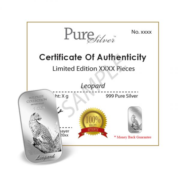 The image of the leopard is embossed on a 1Oz 999 fine silver.