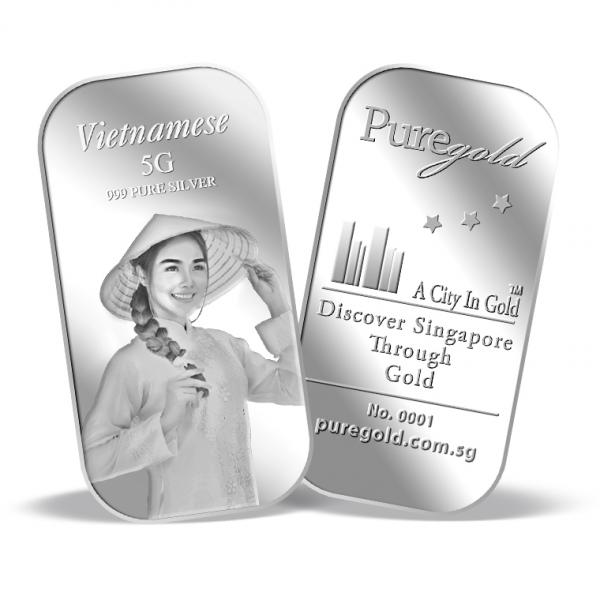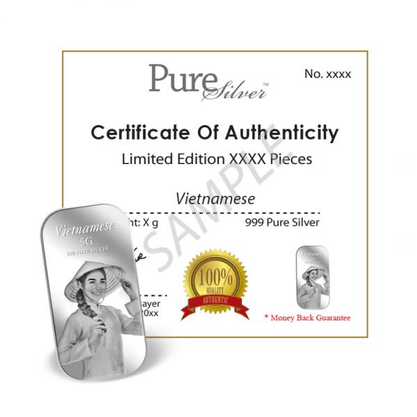The image of the Vietnamese is embossed on a 5g 999 fine silver bar.