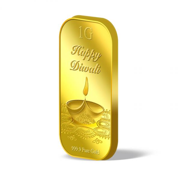 The image of Lamp is embossed on a 1g 999.9 fine gold Bar.
