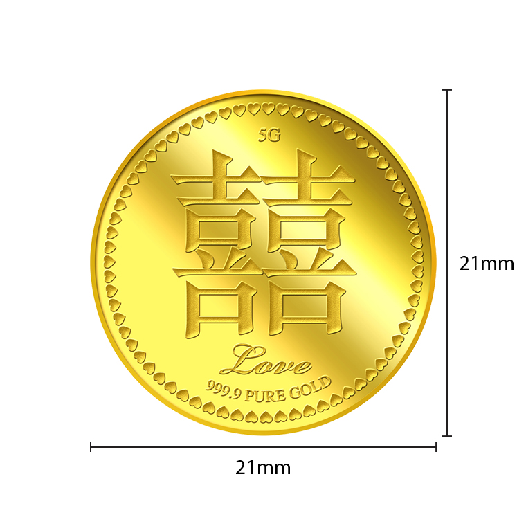 囍is not really a character use in verbal communication. Its equivalent in daily speech is 喜(xi, happy or joy). Notice the similarity? Yes, when you double the character 喜,you get 囍(shuangxi, double xi), which is only used as an ornamental design motif associated with Chinese weddings. With two 喜,compressed to assume the square shape of a standard Chinese Character, Shuangxi means "Double Happiness" to Medallioncide with the new couple.