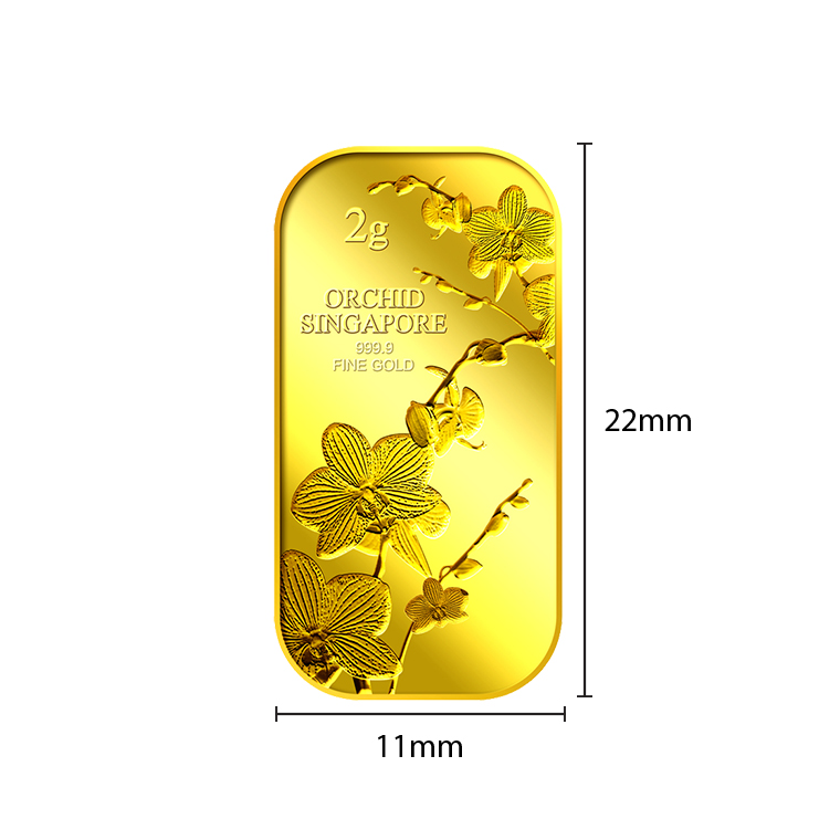 The image of the Singapore Merlion is embossed on a 2g 999.9 fine gold bar.