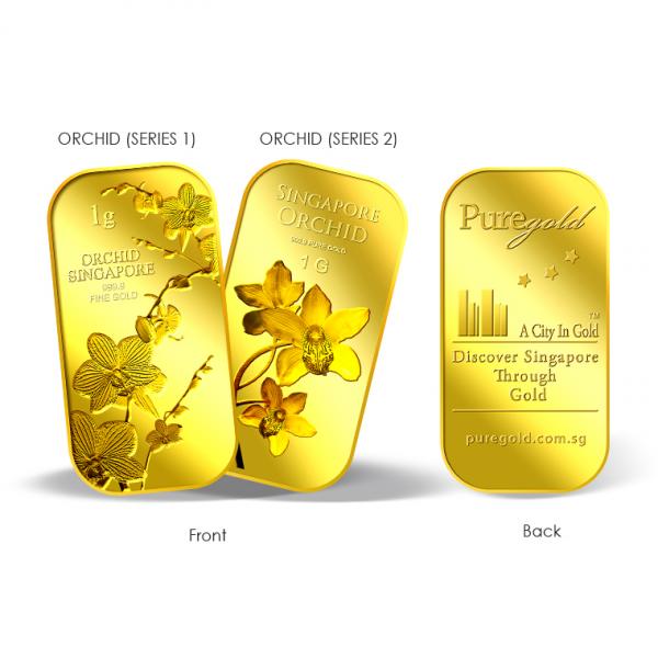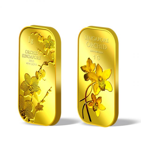 1g gold bar embossed with the image of Singapore national flower, the Vanda (Miss Joaquim).