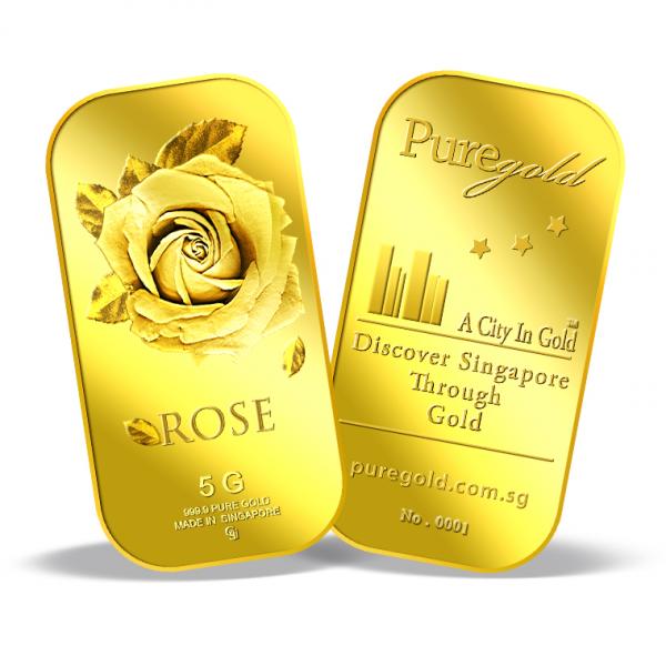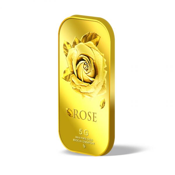 The image of the Big Rose is embossed on a 5g 999.9 fine gold bar.