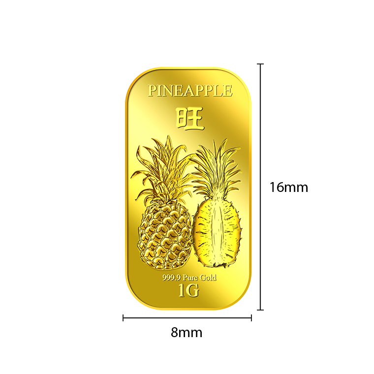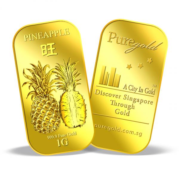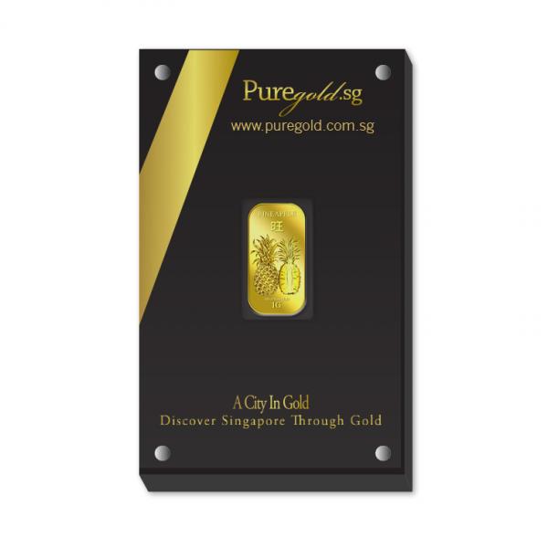 The image is embossed on a 1 gram 999.9 fine gold bar.