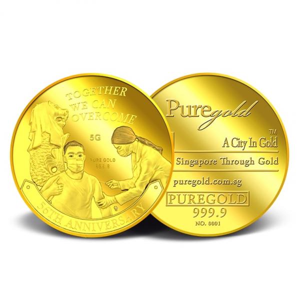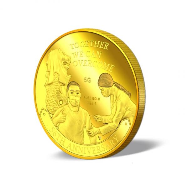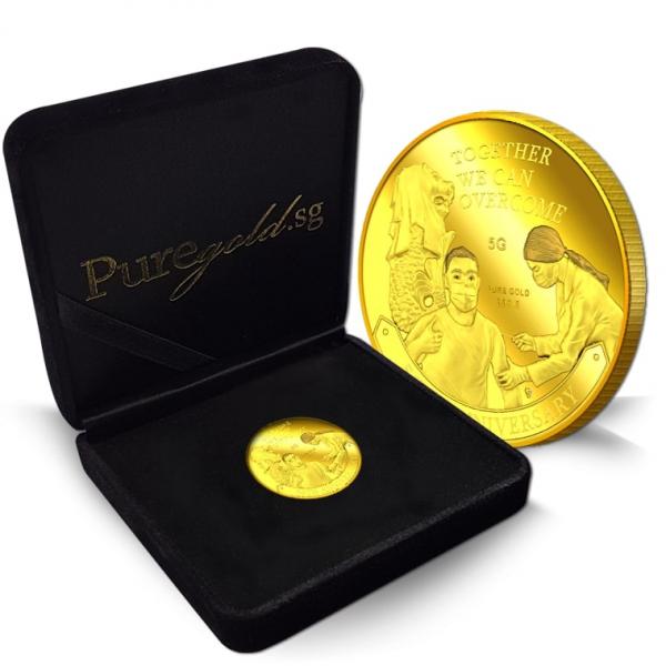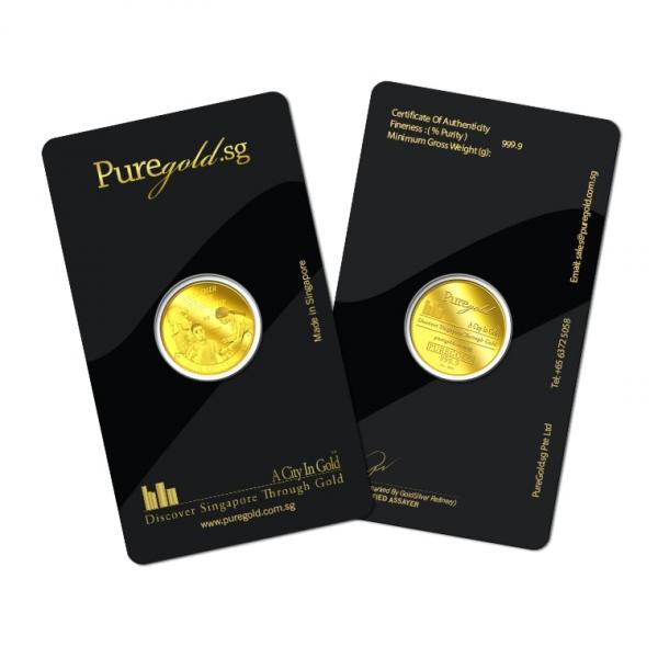 The image is embossed on a 5 grams 999.9 fine gold medallion.