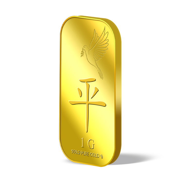 The image is embossed on a 1 gram 999.9 fine gold bar.