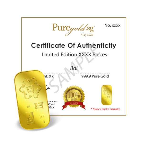 The image is embossed on a 1 gram 999.9 fine gold bar.
