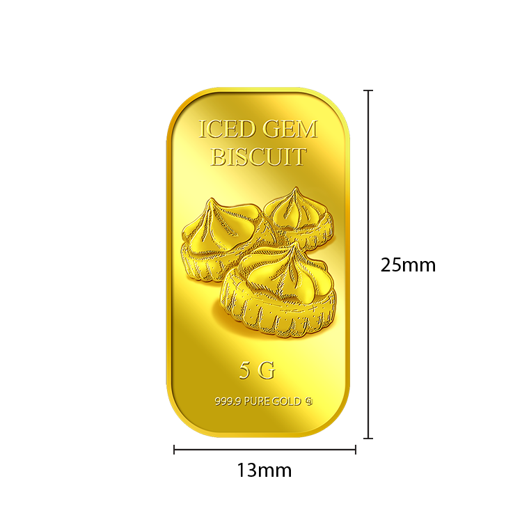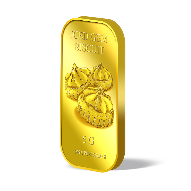 The image is embossed on a 5 grams 999.9 fine gold bar.