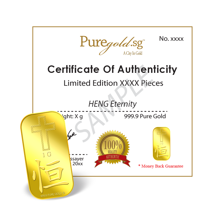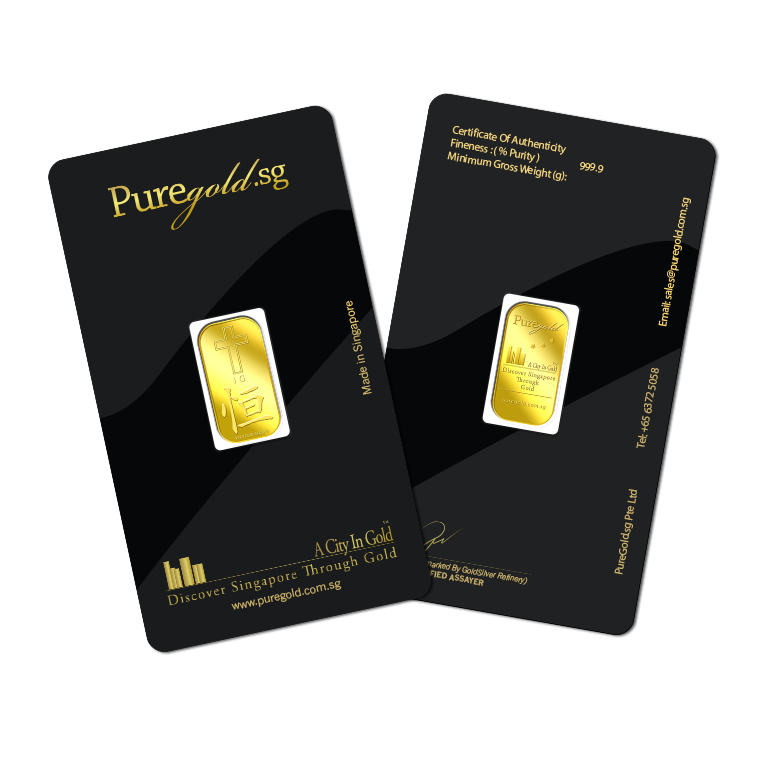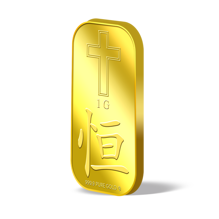 The image is embossed on a 1 gram 999.9 fine gold bar.