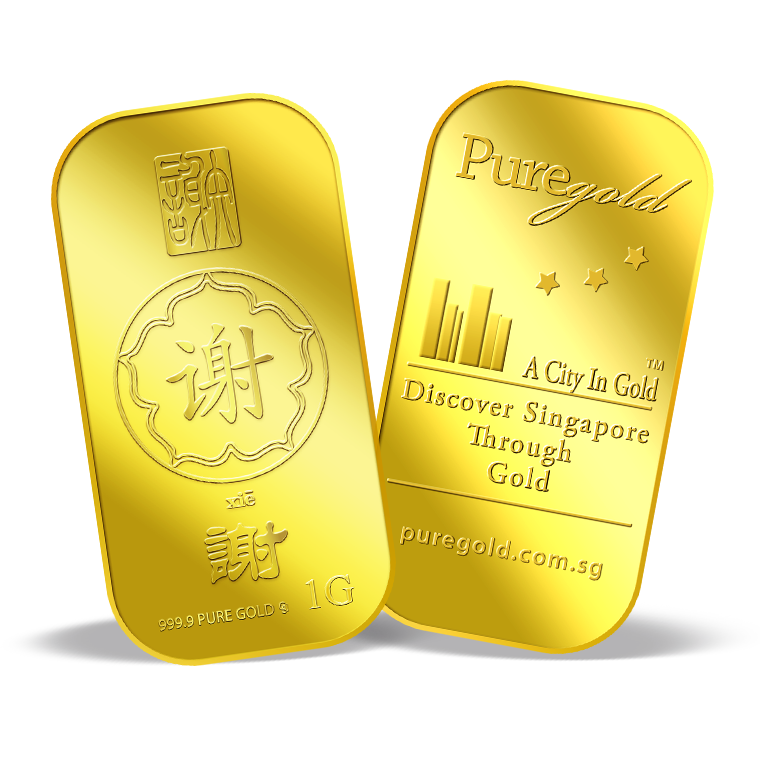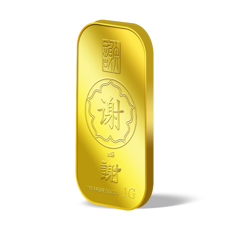 The image is embossed on a 1 gram 999.9 fine gold bar.