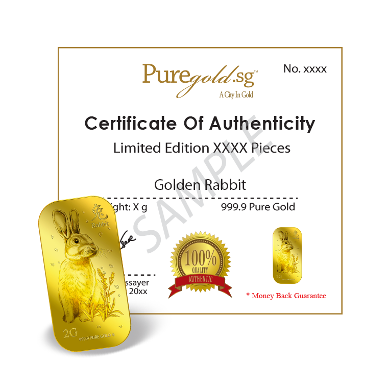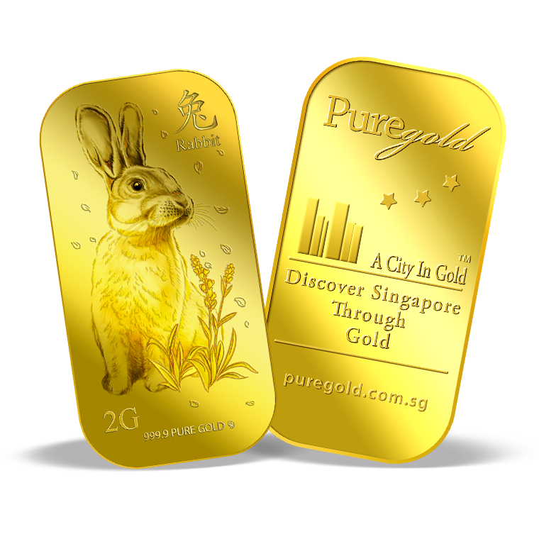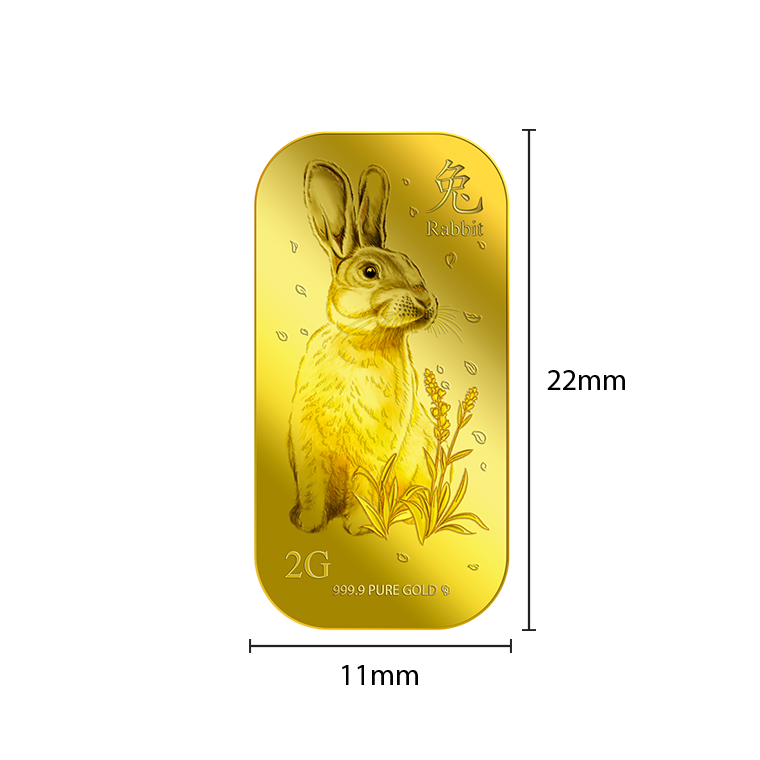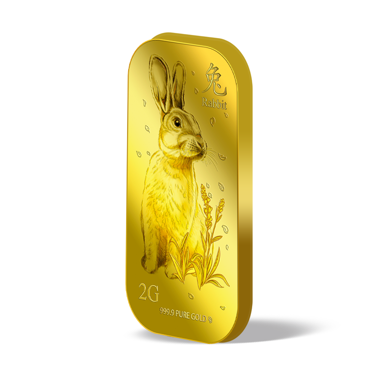 The image is embossed on a 2 grams 999.9 fine gold bar.