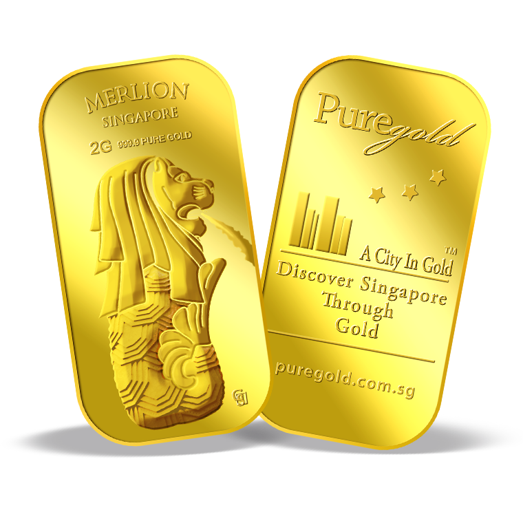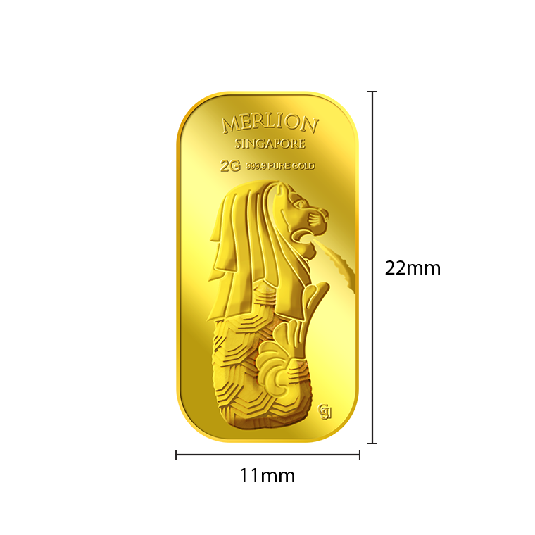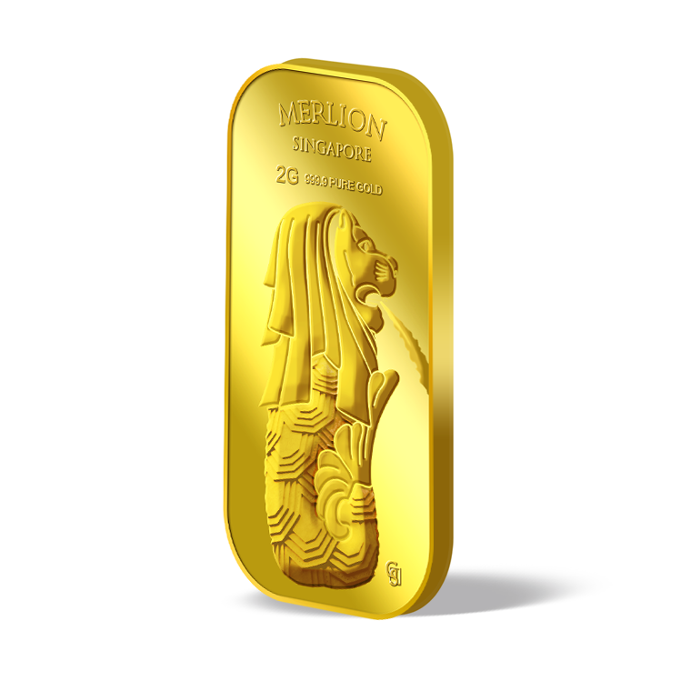 The image is embossed on a 2 grams 999.9 fine gold bar.