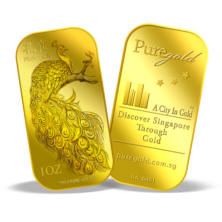 1Oz Golden Peacock Gold Bar