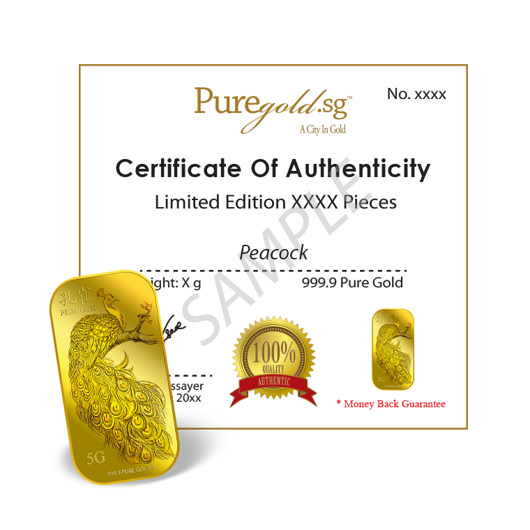 1Oz Golden Peacock Gold Bar