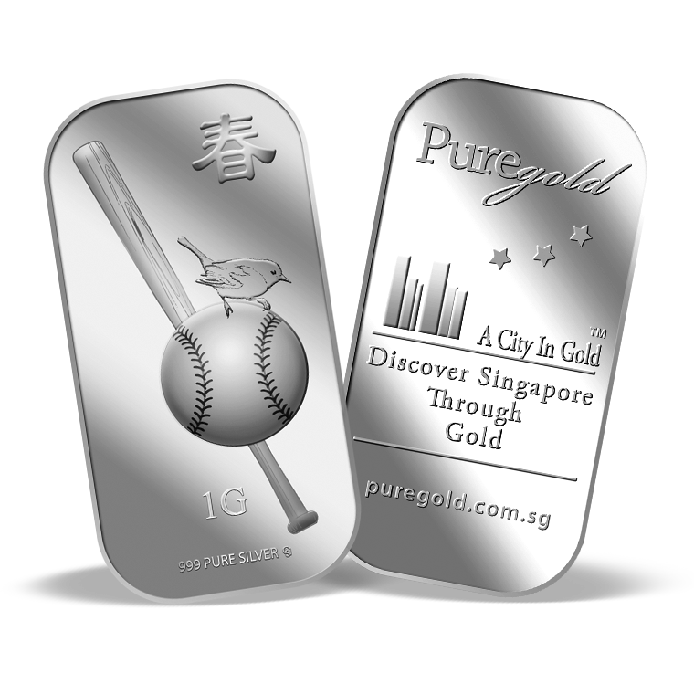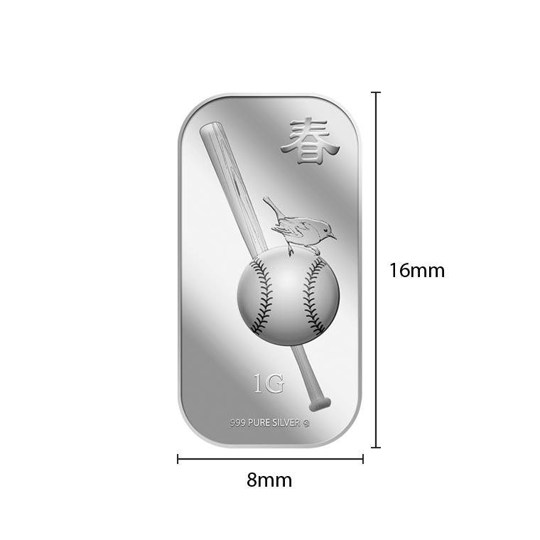 The image is embossed on a 1 gram 999 fine silver bar.