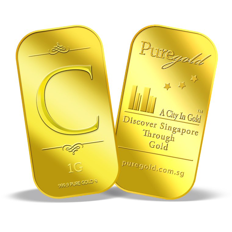 The image is embossed on a 1 gram 999.9 fine gold bar.