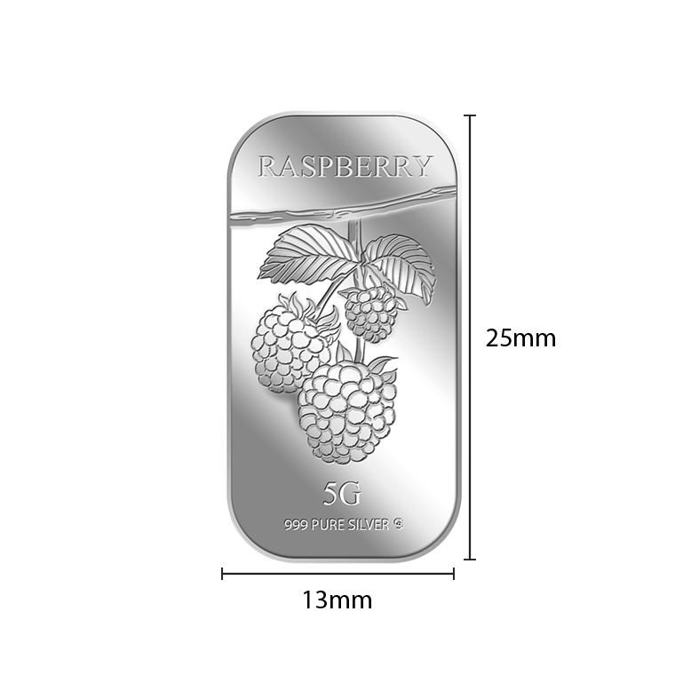 The image is embossed on a 5 grams 999 fine silver bar.