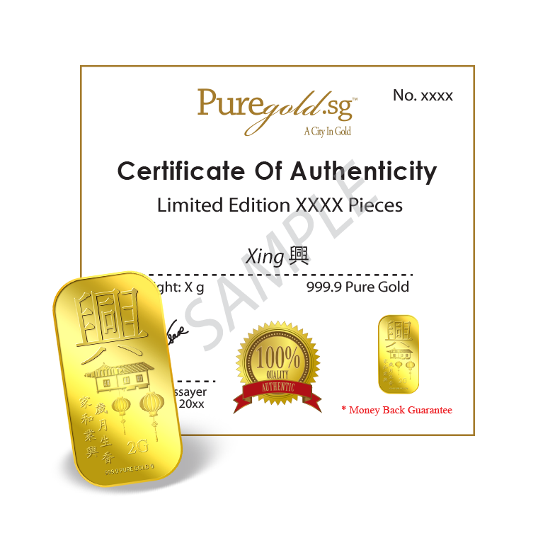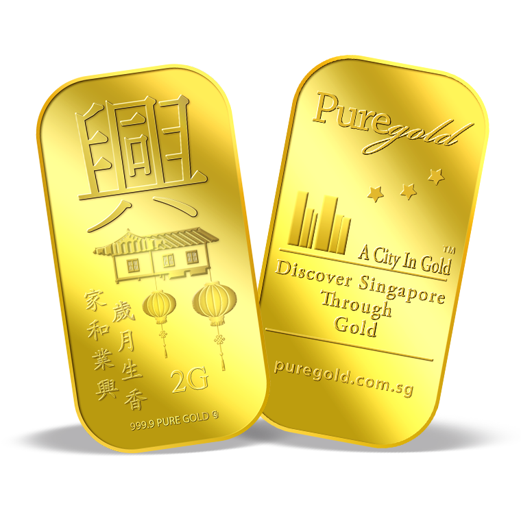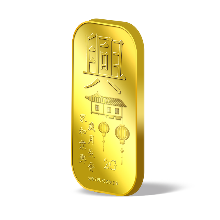 The image is embossed on a 2 grams 999.9 fine gold bar.