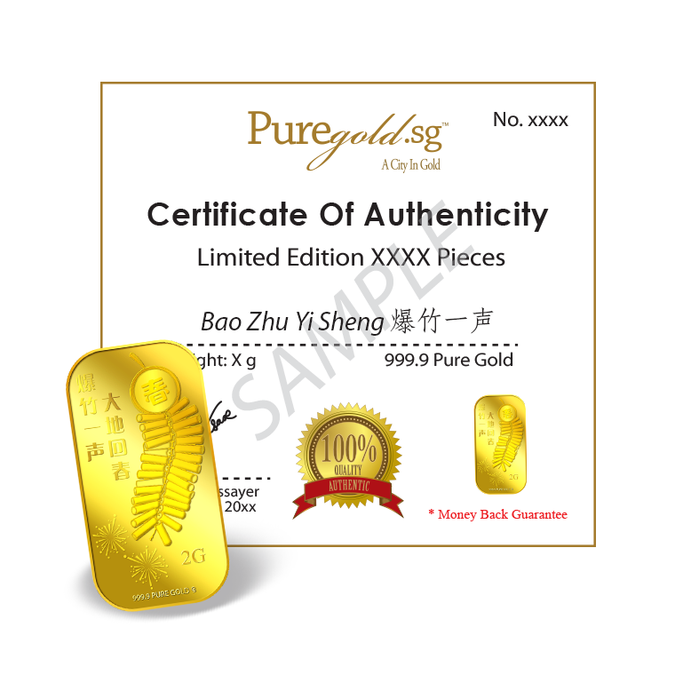 2g Bao Zhu Yi Sheng 爆竹一声 Gold Bar