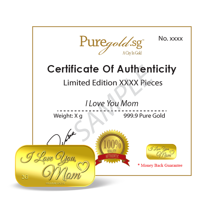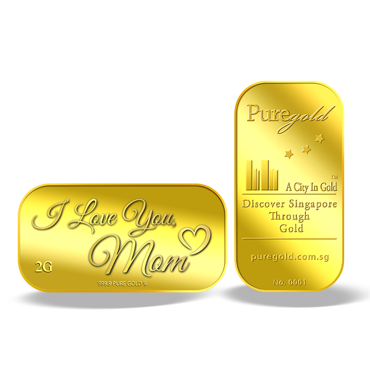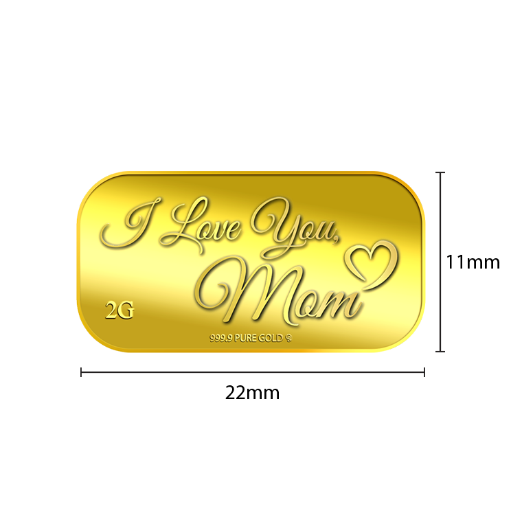 The image is embossed on a 2 grams 999.9 fine gold bar.