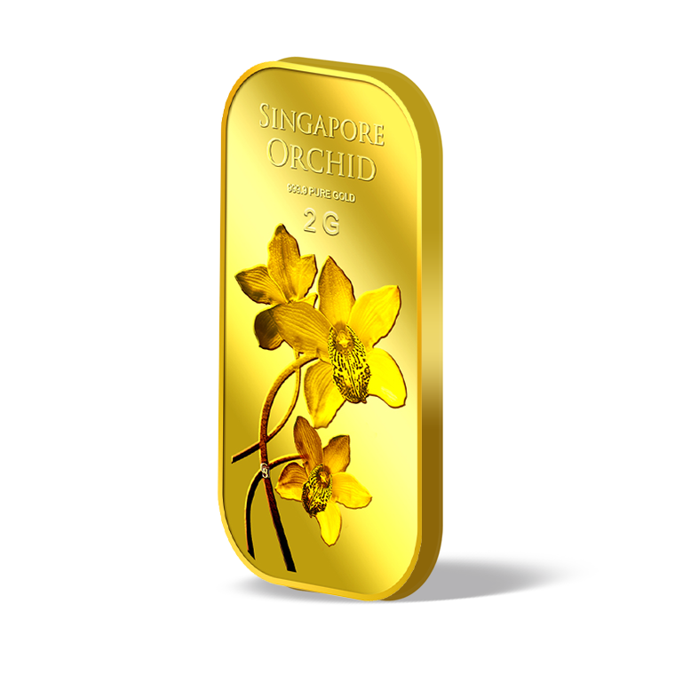 The image is embossed on a 2 grams 999.9 fine gold bar.