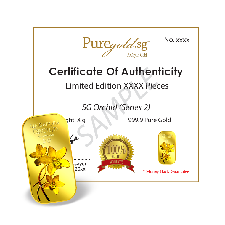 A hybrid orchid between the Burmese Vanda teres and the Malayan Vanda Hookeriana, the Vanda (Miss Joaquim) was bred by horticulturist Agnes Joaquim and chosen as Singapore national flower in 1981. Vanda Miss Joaquim was also selected as the national flower due to its hardy and resilient qualities, and its unique trait of blooming throughout the year. These are characteristics which reflect Singapore’s continuous pursue for progress and excellence in all aspects of life, and symbolize Singapore’s never ending hope and renewal of the future. This robust free-flowering plant has long been a symbol of love and beauty, making it an elegant addition to any gold collection.