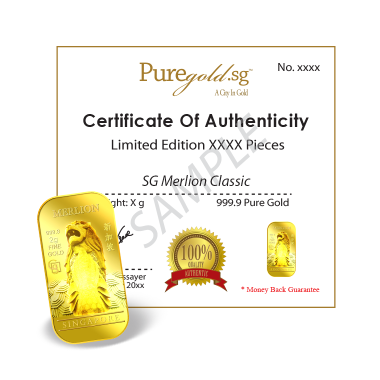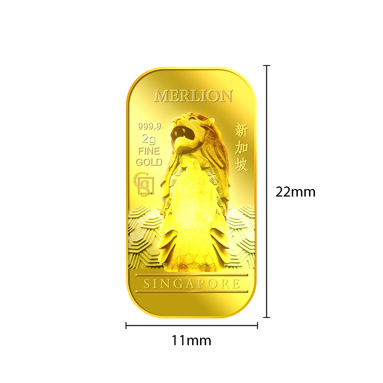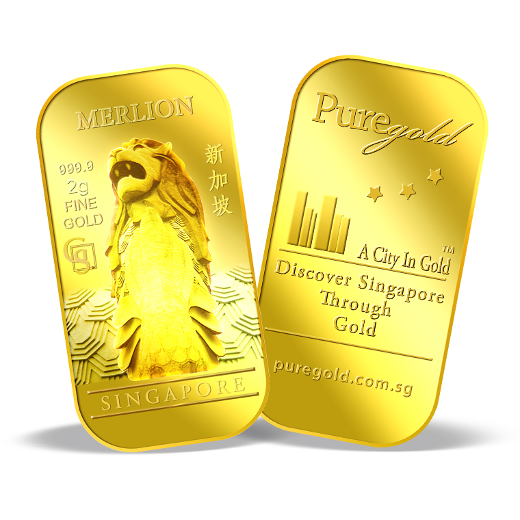 The image is embossed on a 2 grams 999.9 fine gold bar.