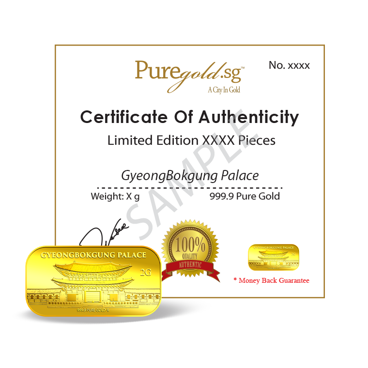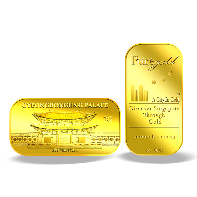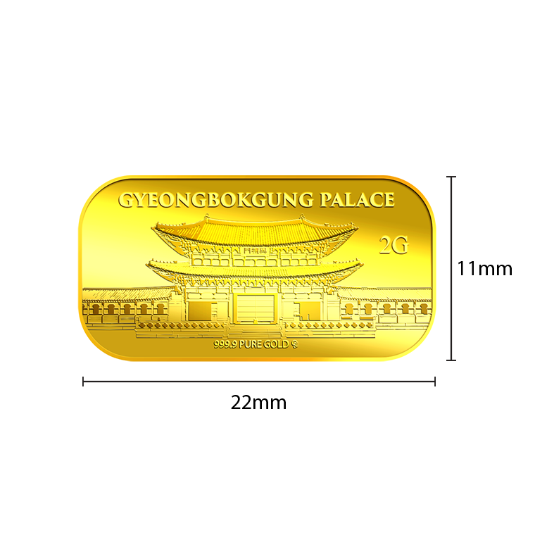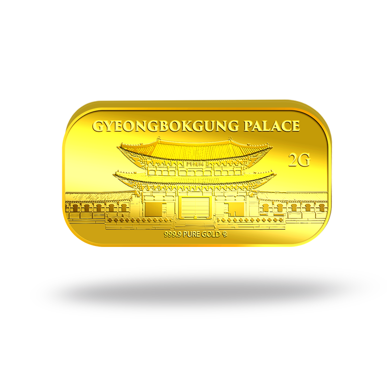 The image is embossed on a 2 grams 999.9 fine gold bar.