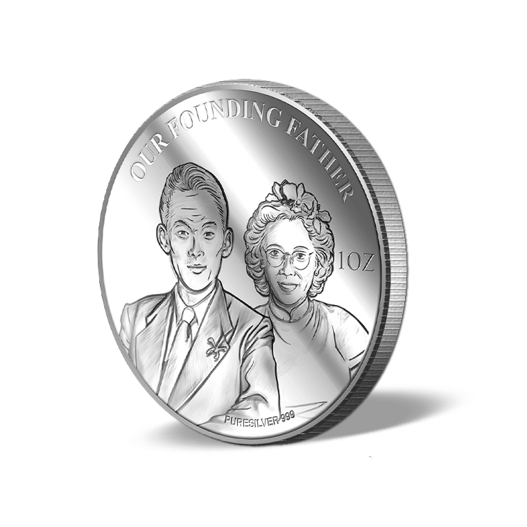 The image is embossed on a 1 troy oz 999 fine silver medallion.