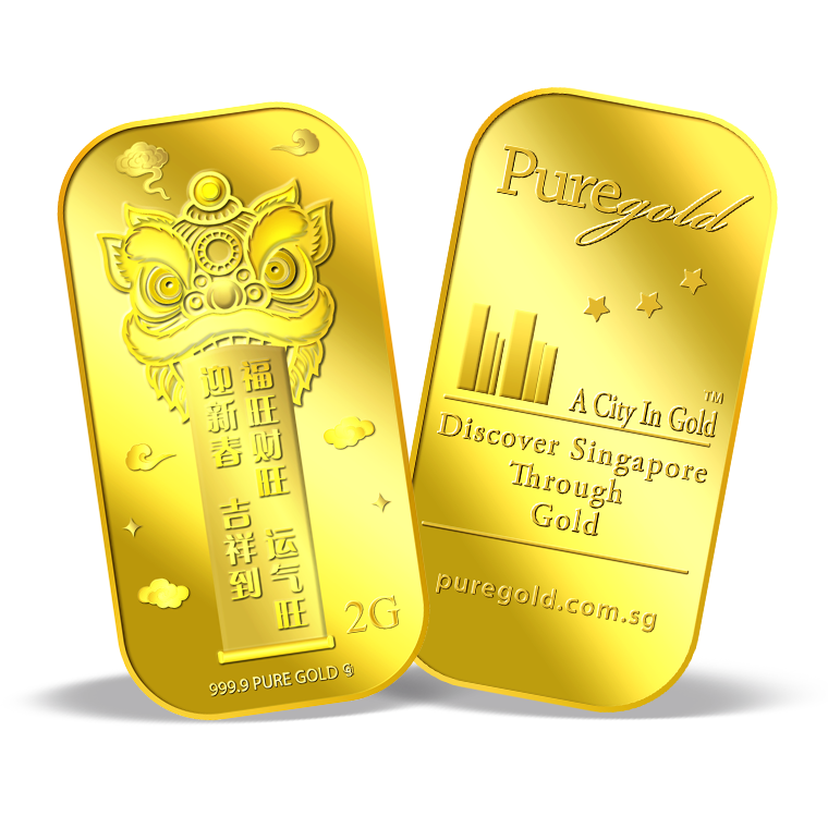The image is embossed on a 2 grams 999.9 fine gold bar.