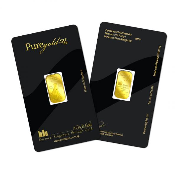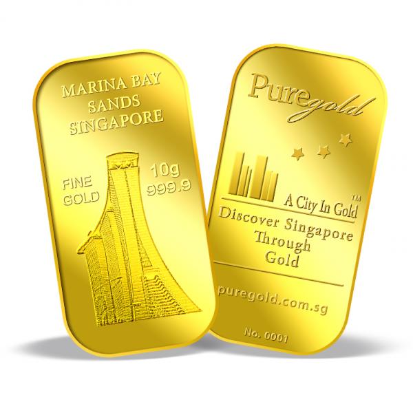 The image of Marina Bay Sands is embossed on a 10g 999.9 fine gold bar.