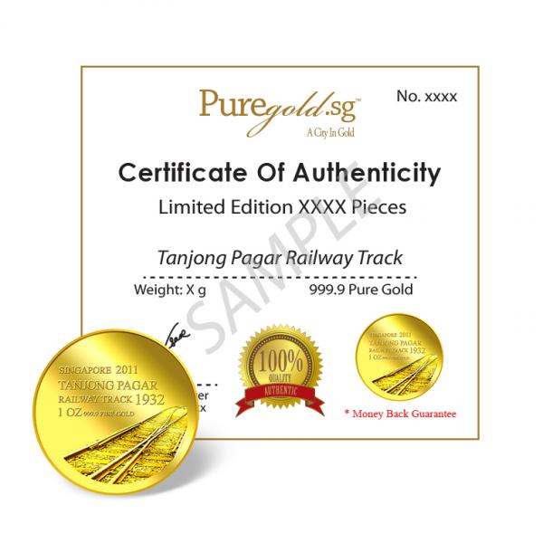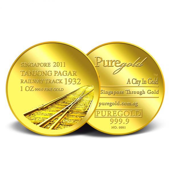 The image of the now defunct Tanjong Pagar Railway Track is embossed on a 1oz 999.9 fine gold medallion.